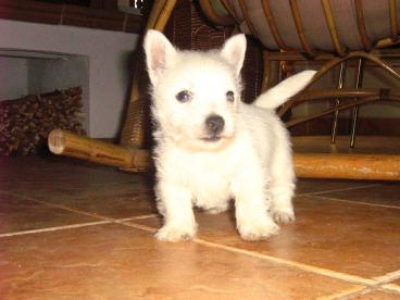 Pejsek Wilibald (Badík) - skvělý pigment, rovná hrubá srst, malé od počátku postavené uši, nosí prut krásně zapřený do hřbetu